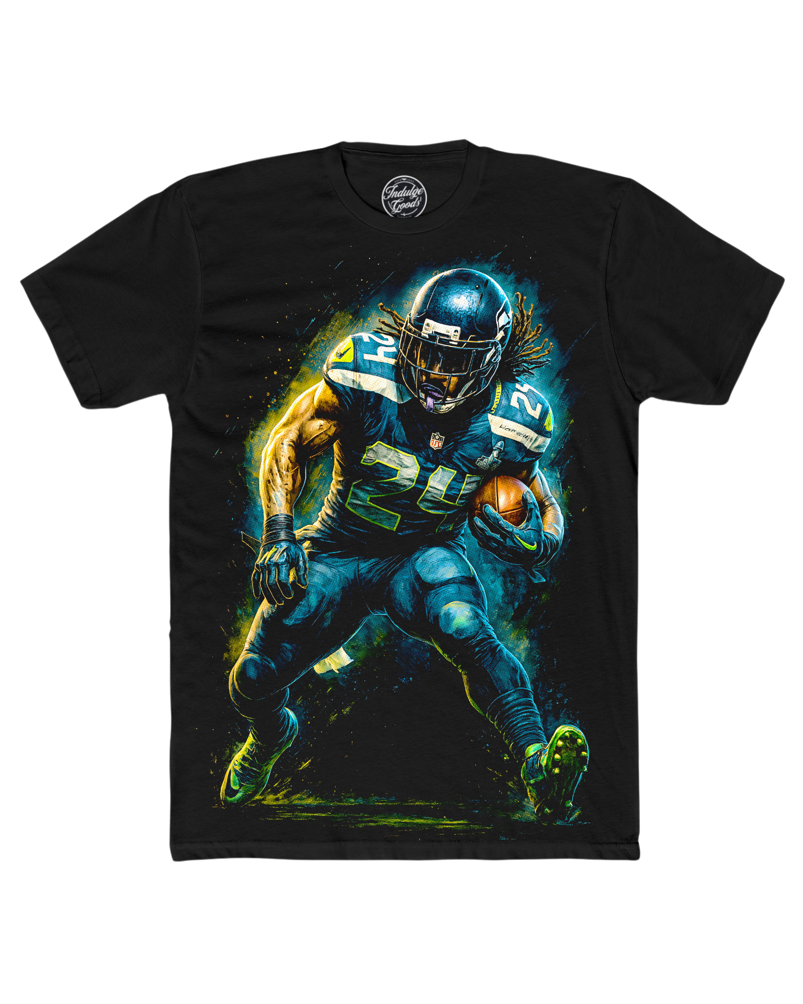 Printed on a 7.5 oz heavyweight premium tee, this shirt delivers a thick, structured feel with an elevated fit that separates it from standard apparel. Featuring a bold, oversized Marshawn Lynch–inspired design, this tee is made to stand out while representing one of the game’s most unforgettable players.